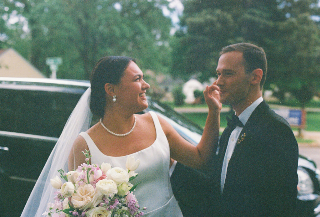 Film photos always strike me in a special way. They make me nostalgic in the same way that 90’s home videos do. There’s something about capturing a moment in time that can never be replicated (no matter how hard some digital filters may try). Whether it’s your first steps on the VCR recorded by your mom in 1995 or those first steps out of the church as husband & wife; the emotions from both feel palpable. It’s no wonder why film photography has skyrocketed in popularity. And it’s why I get so excited when a couple adds film to their wedding package! Here are some of my favorite pics from Catholic weddings shot on film in 2025.