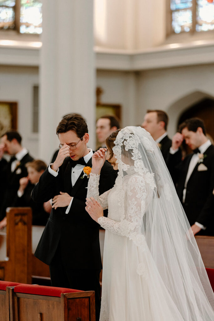 One of my favorite things about Catholic and Christian weddings is how enveloped the day is in prayer. Oftentimes the bridesmaids will pray over the bride and the groomsmen over the groom. Sometimes this is a super quick moment I’m not included in on. Other times, this is more of a coordinated prayer, allowing me to capture these tender moments and beautiful words spoken over the couple.