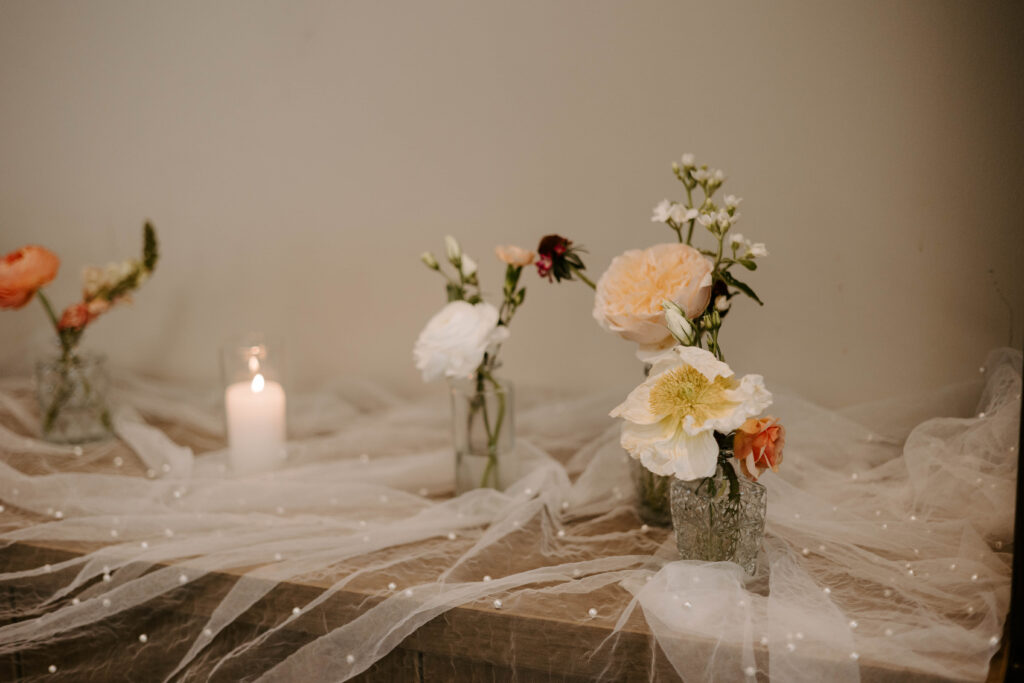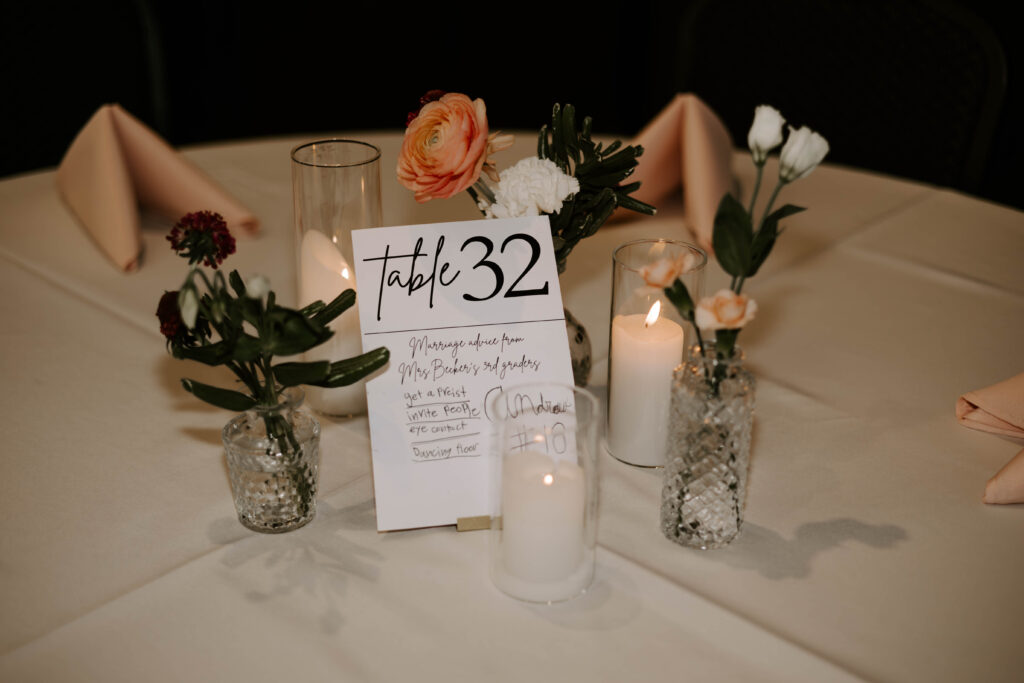 Brittney and Cole also decided they wanted bud vases for their reception. I think this is such a great way to include more of your florals and I love putting together these super dainty arrangements!
