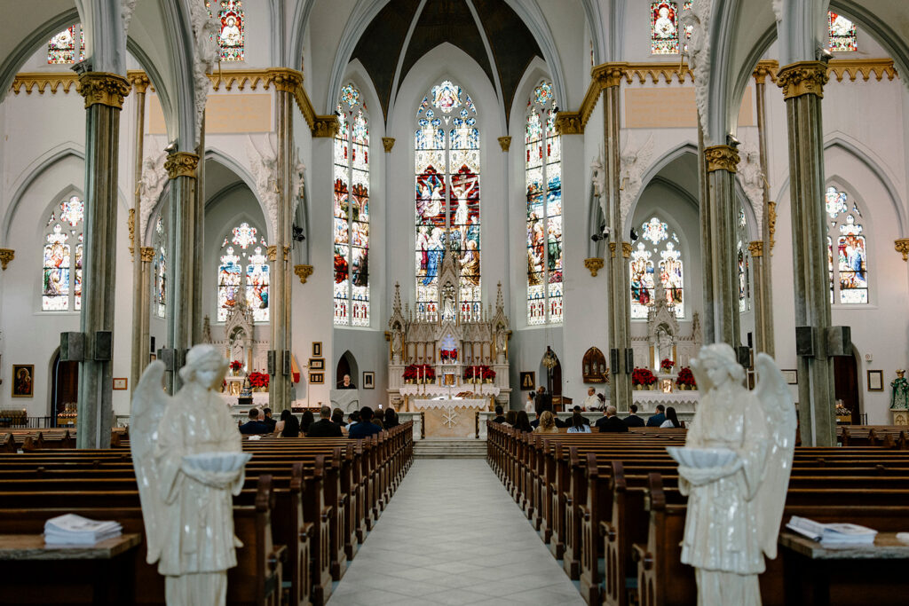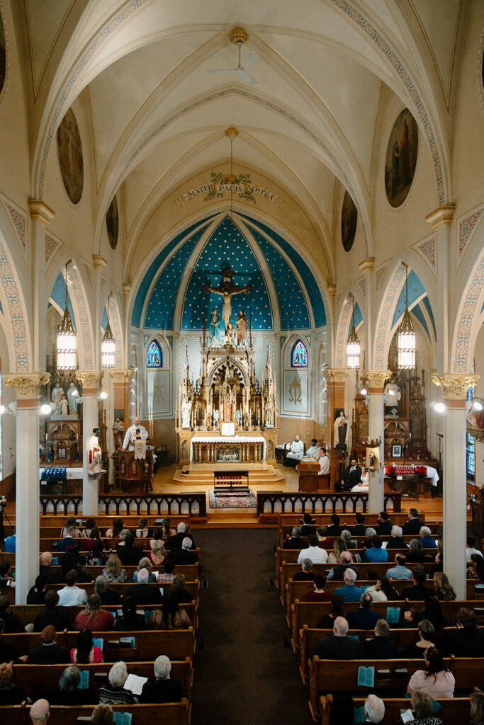 A day devoted to Jessica & Robert’s love and the Sacred Heart of Jesus. From the Sacred Heart cuff links, the color scheme, the decor, and the Sacred Heart charms that each guest received; the entire day was centered around Christ’s love. Their nuptial mass was at Sacred Heart Catholic Church in Indianapolis, IN. Followed by their reception at Ivory Foundry Events where these two dined and danced with all their loved ones!