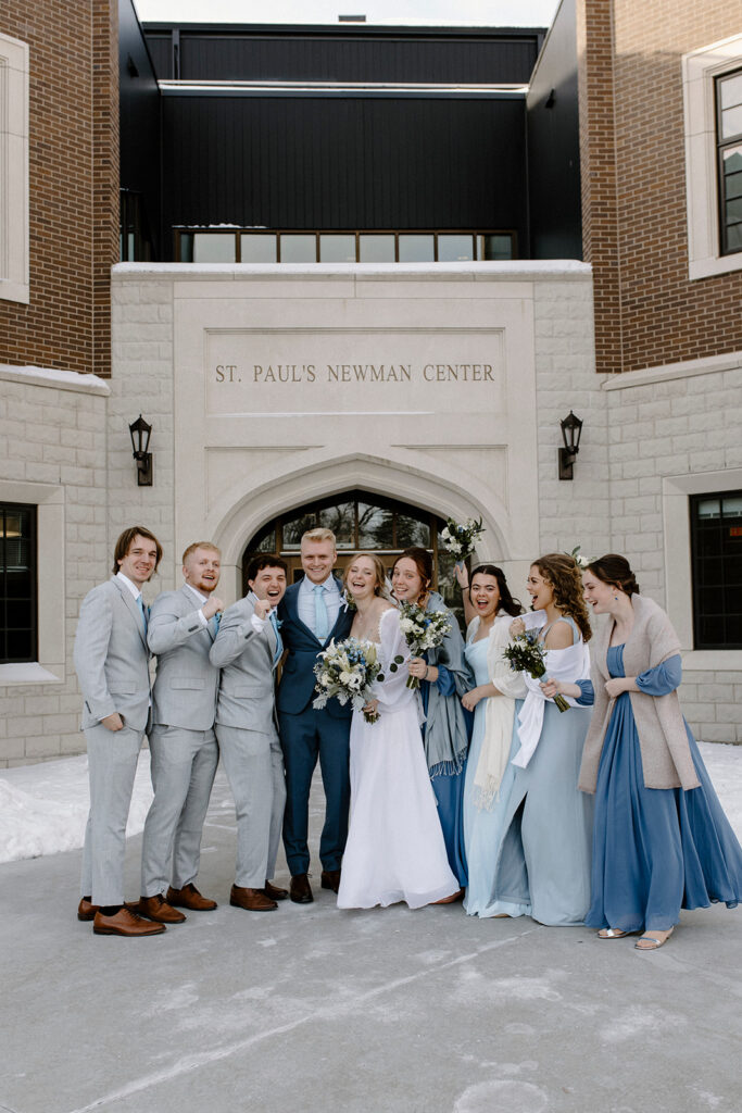 Susanna & Sawyer were married at St. Paul’s Newman Center in Fargo, North Dakota. Every piece of Susanna’s wedding wardrobe, from her flowers and veil to her dress was handmade by her mom! Susanna and Sawyer’s recepetion was also at the Newman Center with games, epic entrances, and an audio guestbook!